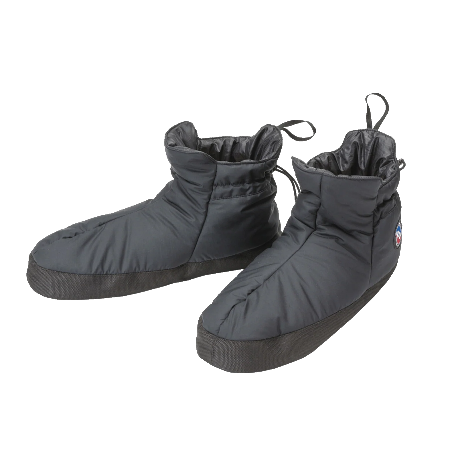 Lightweight synthetic or minimal down booties sufficient. Big Agnes slippers excel in these conditions.